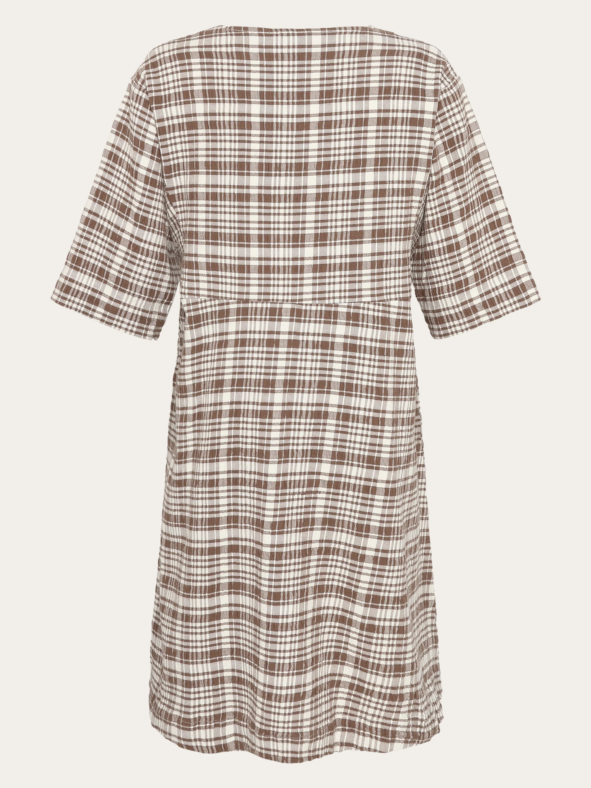 Seersucker check tunica dress - GOTS/Vegan - Beige check